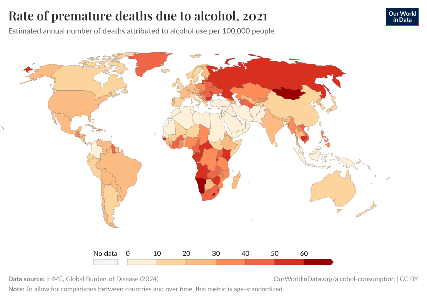 Shown here is the rate of premature deaths caused by alcohol.
