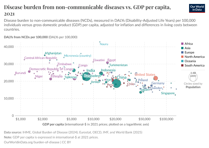 The visualizations here focus on the disease burden resulting from non-communicable diseases (NCDs).