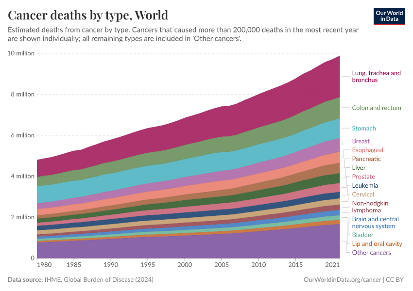 Saloni Dattani, Veronika Samborska, Hannah Ritchie, and Max Roser (2024) - “Cancer” Published online at OurWorldinData.org. Retrieved from: 'https://auto-epoch.owid.pages.dev/cancer' [Online Resource]BibTeX citation