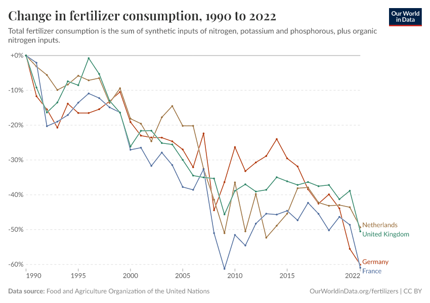 Official governmental statistics — for example, in the UK — confirm the same reduction in fertilizer use.