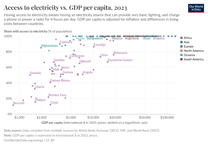 Hannah Ritchie, Pablo Rosado, and Max Roser (2019) - “Access to Energy” Published online at OurWorldinData.org. Retrieved from: 'https://auto-epoch.owid.pages.dev/energy-access' [Online Resource]BibTeX citation