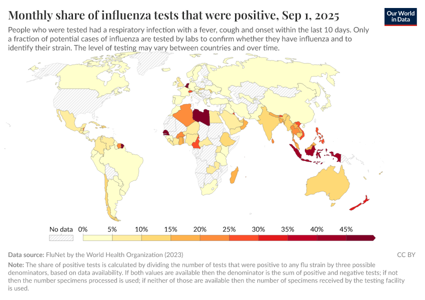 Explore global data produced by the World Health Organization on influenza symptoms and cases.