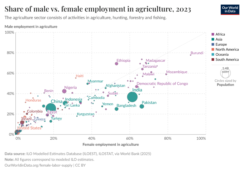 Share of male vs female employment in agriculture