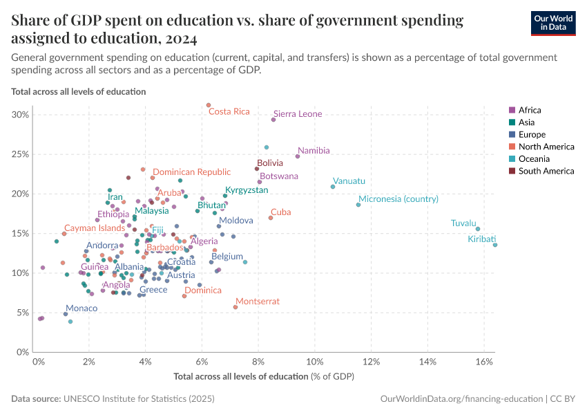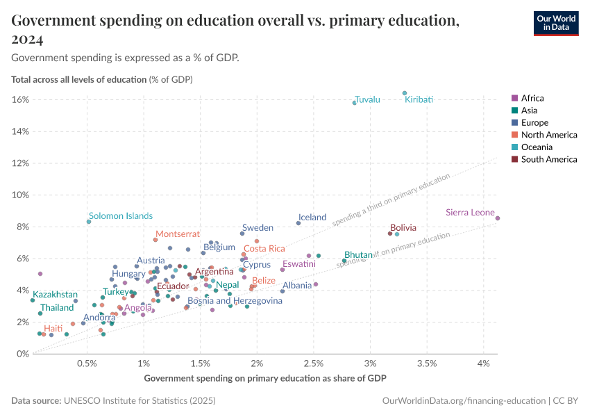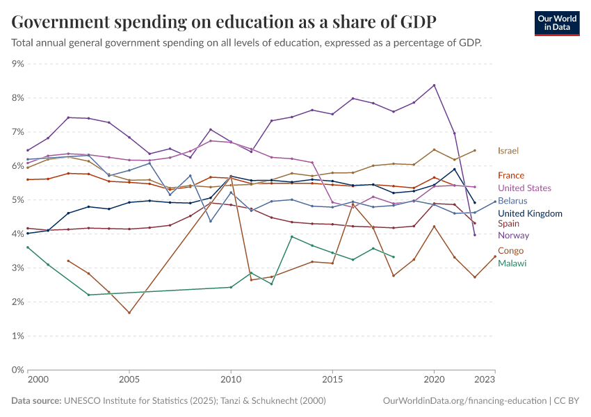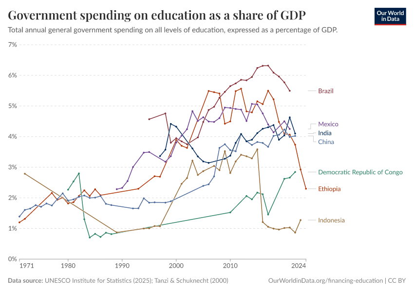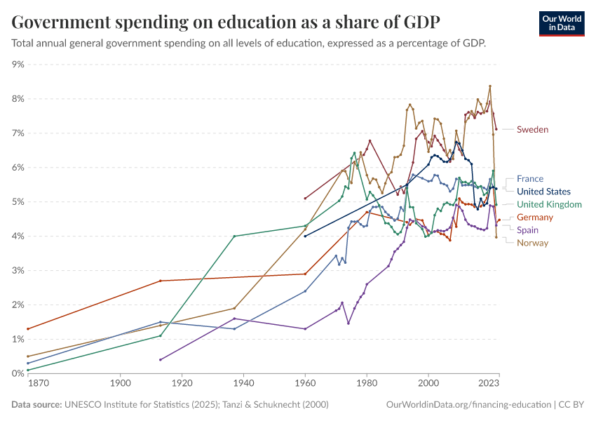 Max Roser and Esteban Ortiz-Ospina (2016) - “Education Spending” Published online at OurWorldinData.org. Retrieved from: 'https://auto-epoch.owid.pages.dev/financing-education' [Online Resource]BibTeX citation