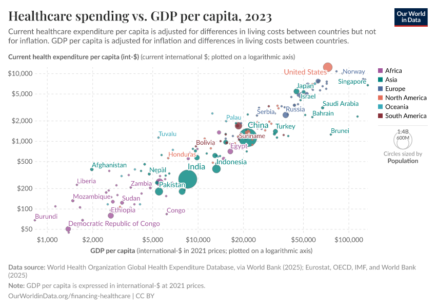 At a cross-country level, the strongest predictor of healthcare spending is national income.