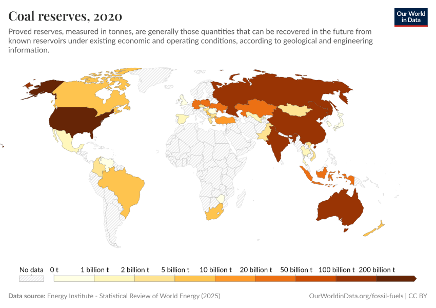 In previous sections, we examined how much fossil fuels different countries produced or consumed. But where in the world do our existing reserves of fossil fuels remain?