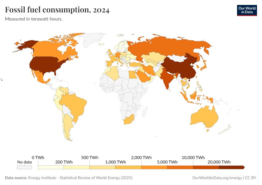 We've looked at how much fossil fuel energy is consumed globally. But what about countries? How much fossil energy do they consume?