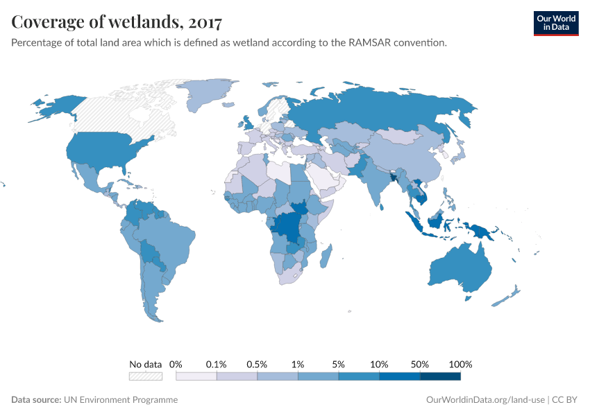 “Data Page: Coverage of wetlands”. Our World in Data (2025). Data adapted from UN Environment Programme. Retrieved from https://auto-epoch.owid.pages.dev:8789/20250909-093708/grapher/coverage-of-wetlands.html [online resource] (archived on September 9, 2025).How to cite this data