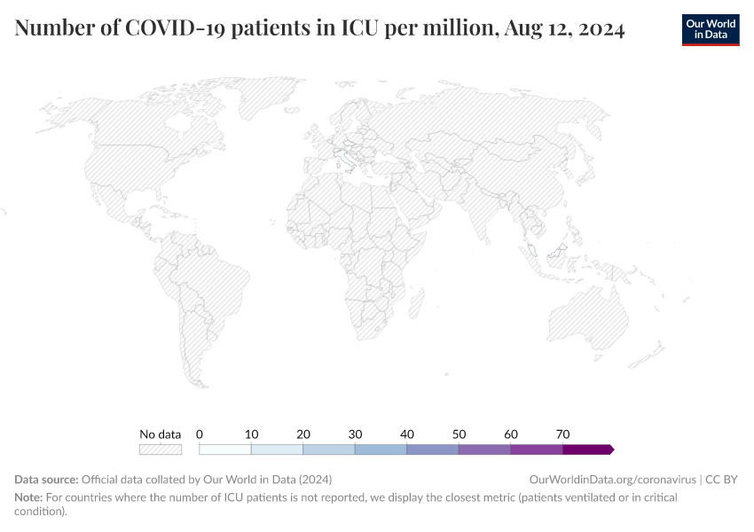 • For countries where the number of ICU patients is not reported, we display the closest metric (patients ventilated or in critical condition).