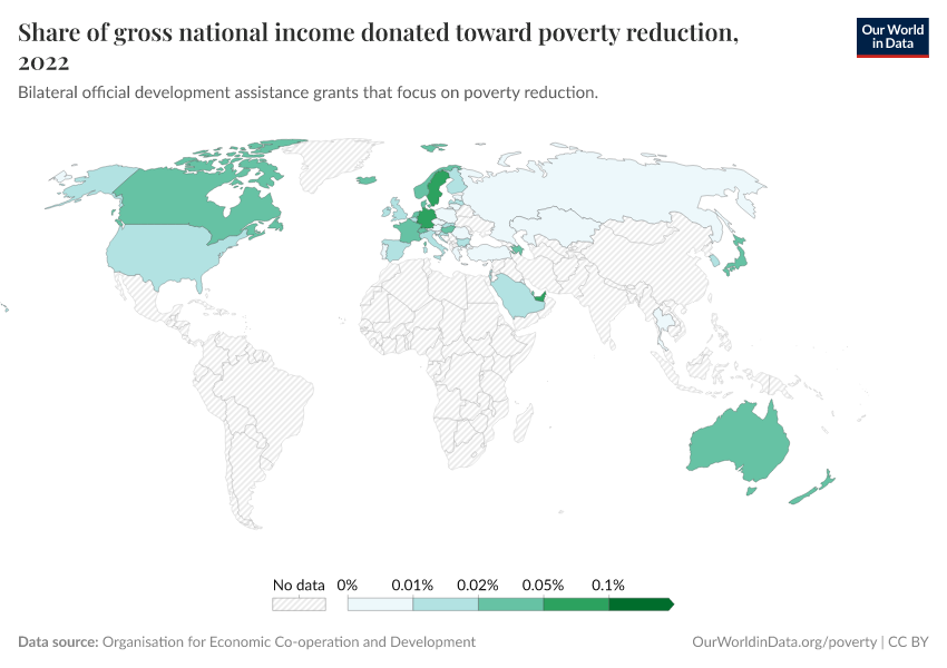 “Data Page: Share of gross national income donated toward poverty reduction”. Our World in Data (2025). Data adapted from Organisation for Economic Co-operation and Development. Retrieved from https://auto-epoch.owid.pages.dev:8789/20250909-093708/grapher/donated-official-development-assistance-grants-for-poverty-reduction.html [online resource] (archived on September 9, 2025).How to cite this data