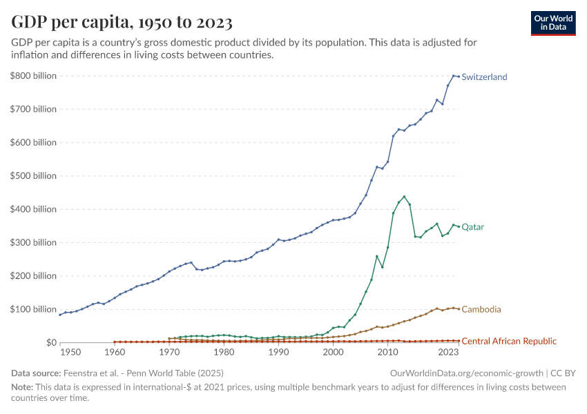 “Data Page: GDP per capita”, part of the following publication: Max Roser, Bertha Rohenkohl, Pablo Arriagada, Joe Hasell, Hannah Ritchie, and Esteban Ortiz-Ospina (2023) - “Economic Growth”. Data adapted from Feenstra et al.. Retrieved from https://auto-epoch.owid.pages.dev:8789/20250909-093708/grapher/gdp-per-capita-penn-world-table.html [online resource] (archived on September 9, 2025).