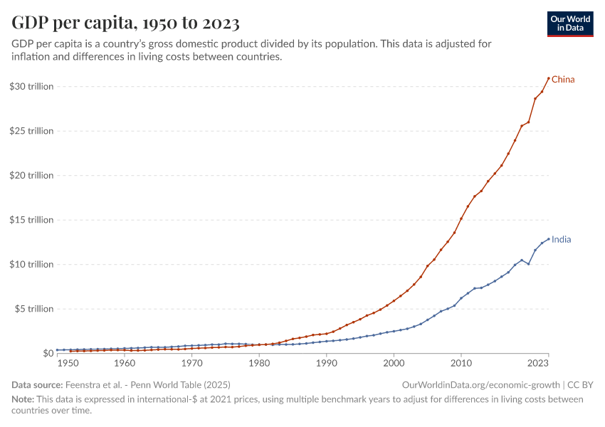 Feenstra et al. - Penn World Table (2023) – with major processing by Our World in Data. “GDP per capita – Penn World Table – In constant international-$” [dataset]. Feenstra et al., “Penn World Table 10.01” [original data]. Retrieved November 2, 2025 from https://auto-epoch.owid.pages.dev:8789/20250909-093708/grapher/gdp-per-capita-penn-world-table.html (archived on September 9, 2025).