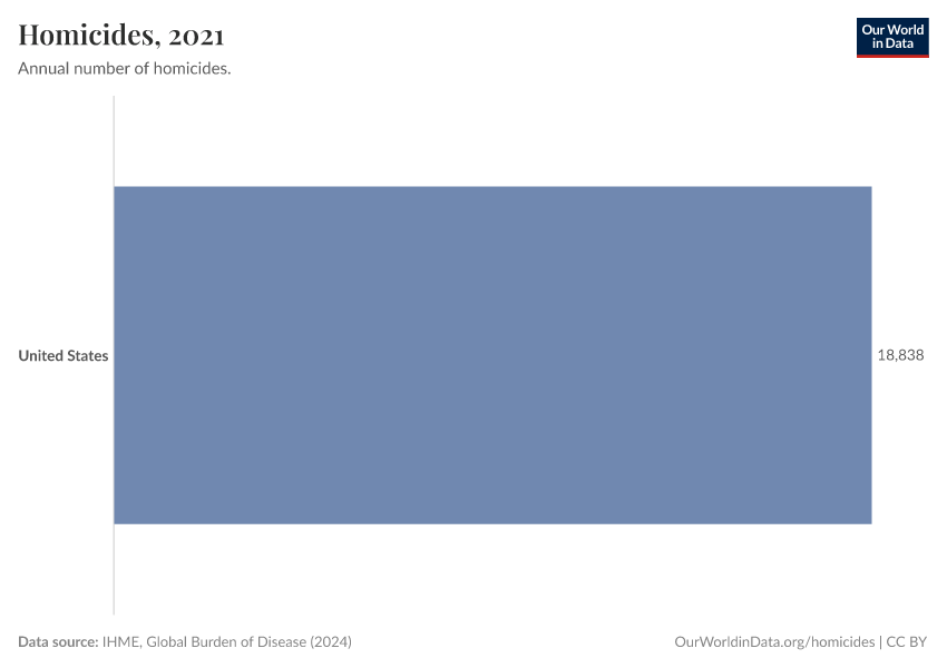 “Data Page: Homicides”, part of the following publication: Esteban Ortiz-Ospina and Max Roser (2016) - “Global Health”. Data adapted from IHME, Global Burden of Disease. Retrieved from https://auto-epoch.owid.pages.dev:8789/20250909-093708/grapher/homicides-ihme.html [online resource] (archived on September 9, 2025).How to cite this data