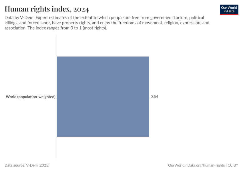 V-Dem (2025) – processed by Our World in Data. “Human rights index – V-Dem” [dataset]. V-Dem, “Democracy report v15” [original data]. Retrieved November 2, 2025 from https://auto-epoch.owid.pages.dev:8789/20250925-233948/grapher/human-rights-index-vdem.html (archived on September 25, 2025).