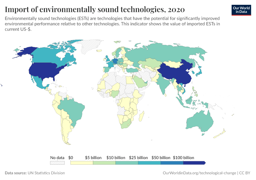 “Data Page: Import of environmentally sound technologies”. Our World in Data (2025). Data adapted from UN Statistics Division. Retrieved from https://auto-epoch.owid.pages.dev:8789/20250909-093708/grapher/import-of-environmentally-sound-technologies.html [online resource] (archived on September 9, 2025).How to cite this data
