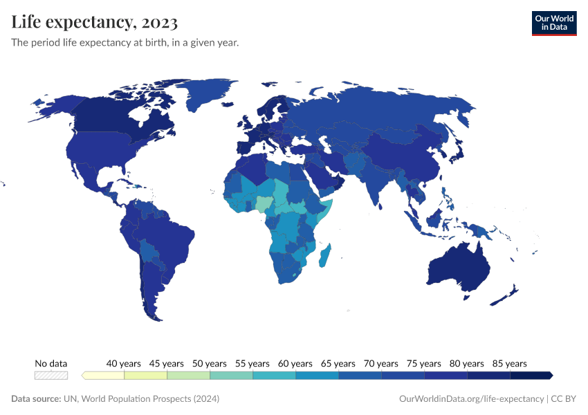“Data Page: Life Expectancy, age 0”. Our World in Data (2025). Data adapted from United Nations. Retrieved from https://auto-epoch.owid.pages.dev:8789/20250909-093708/grapher/life-expectancy-unwpp.html [online resource] (archived on September 9, 2025).How to cite this data