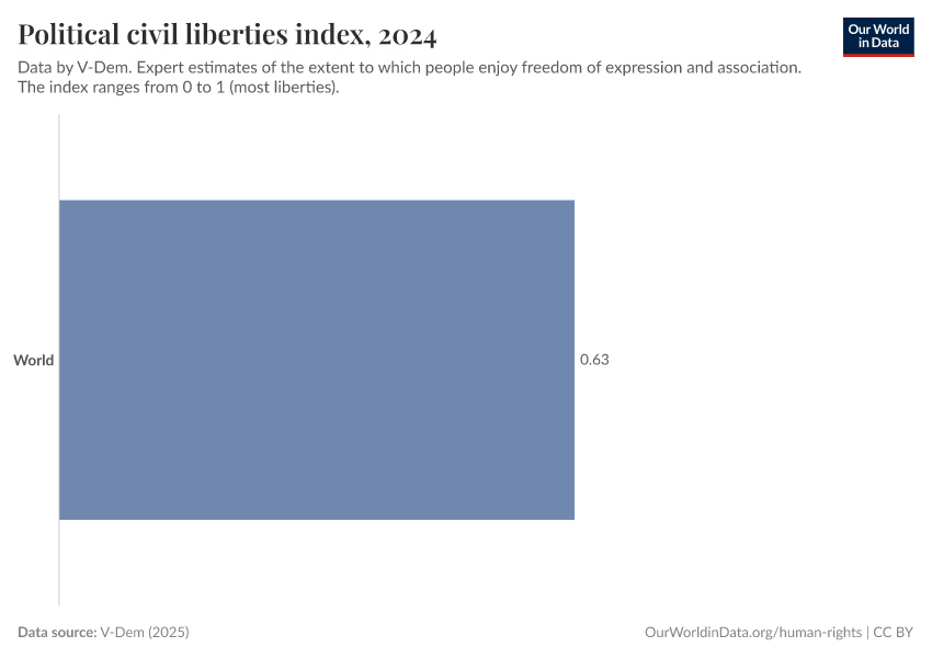 “Data Page: Political civil liberties index”, part of the following publication: Bastian Herre, Lucas Rodés-Guirao, and Esteban Ortiz-Ospina (2013) - “Democracy”. Data adapted from V-Dem. Retrieved from https://auto-epoch.owid.pages.dev:8789/20250925-233948/grapher/political-civil-liberties-index.html [online resource] (archived on September 25, 2025).How to cite this data