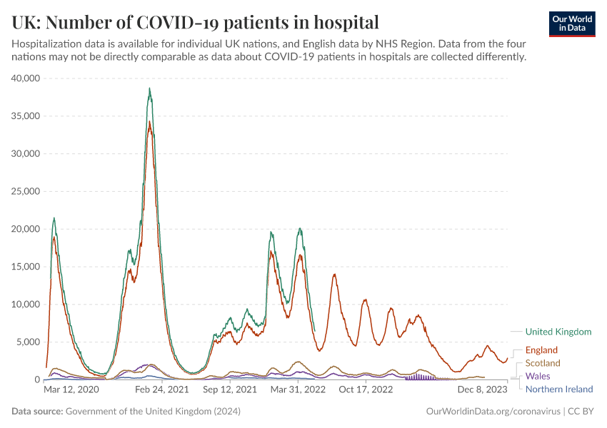 Government of the United Kingdom (2024) – with minor processing by Our World in Data. “UK: Number of COVID-19 patients in hospital” [dataset]. Government of the United Kingdom, “UKHSA data dashboard” [original data]. Retrieved November 1, 2025 from https://auto-epoch.owid.pages.dev:8789/20250909-093708/grapher/uk-covid-hospital-patients.html (archived on September 9, 2025).