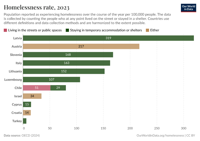 Bastian Herre and Pablo Arriagada (2024) - “Homelessness” Published online at OurWorldinData.org. Retrieved from: 'https://auto-epoch.owid.pages.dev/homelessness' [Online Resource]BibTeX citation