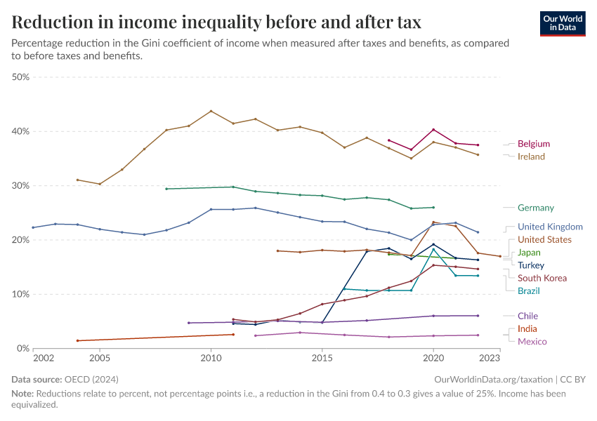 Joe Hasell (2023) - “Income inequality before and after taxes: how much do countries redistribute income?” Published online at OurWorldinData.org. Retrieved from: 'https://auto-epoch.owid.pages.dev/income-inequality-before-and-after-taxes' [Online Resource]BibTeX citation