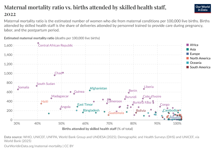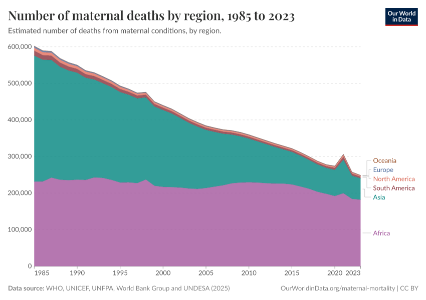 On this page, we present global data and research on maternal mortality — pregnancy-related death — how it varies around the world, how much it has been reduced over time, and what we can do to reduce the risk of pregnancy-related death further.