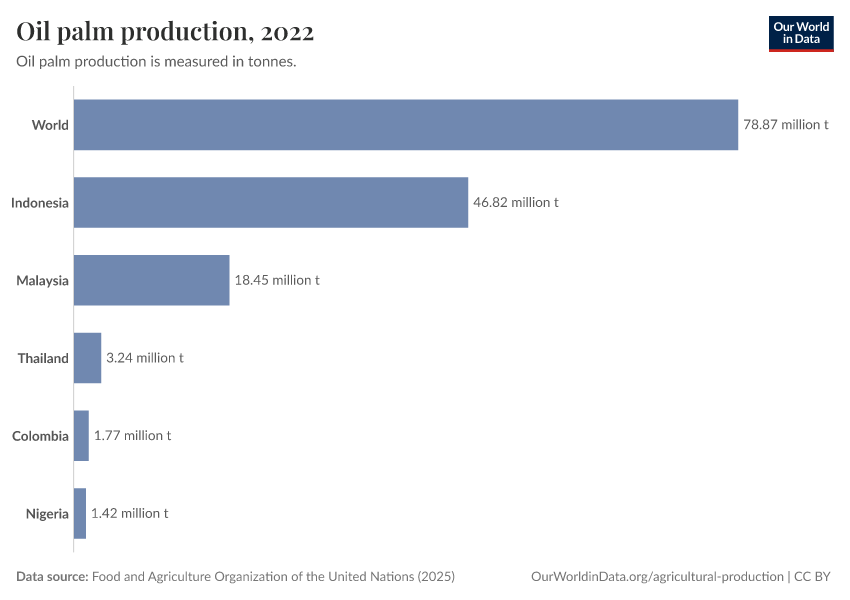 Hannah Ritchie (2021) - “Palm Oil” Published online at OurWorldinData.org. Retrieved from: 'https://auto-epoch.owid.pages.dev:8789/20260119-235736/palm-oil.html' [Online Resource] (archived on January 19, 2026).BibTeX citation