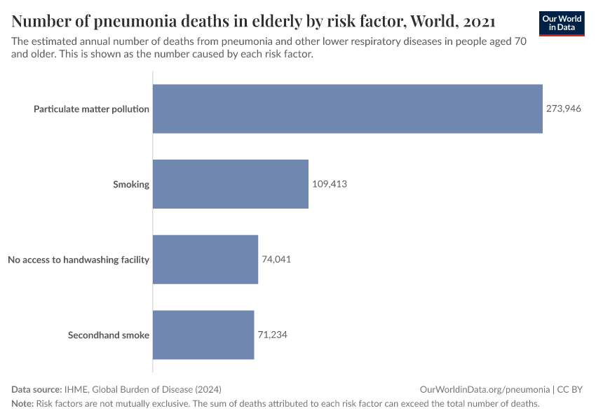 Air pollution is also a major risk factor for pneumonia, as you can see in the chart.