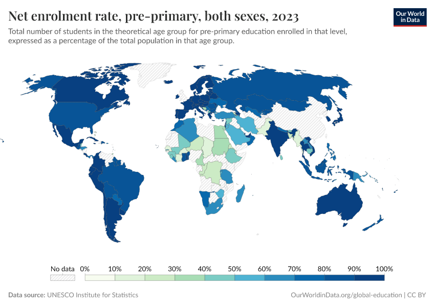 Data for this indicator is shown in the interactive visualization. We also show the enrollment in tertiary education.