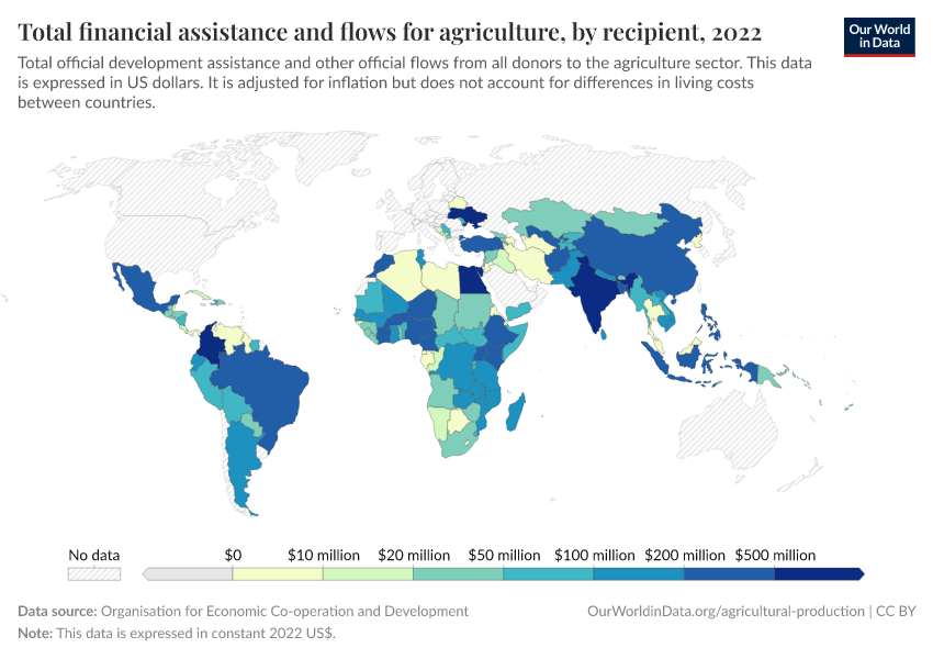 This indicator is measured as disbursements of official development assistance (ODA) and other official flows to the agriculture sector.