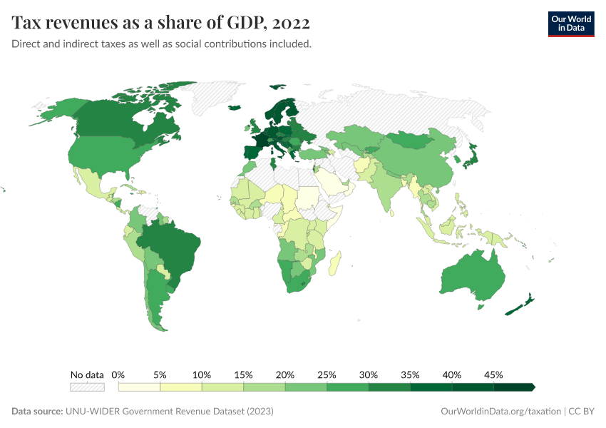 The visualization shows a map of total tax revenues, expressed as a share of GDP.