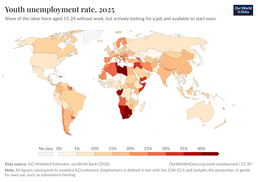 In the map, we focus on overall unemployment rates, but the picture can look very different for specific groups. In many countries, women have higher unemployment rates, and young people are more likely to be unemployed.